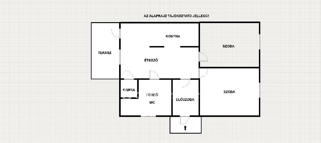 Az ingatlanban egy terasz, előszoba, két szoba, konyha/étkező, kamra, és egy fürdő/wc található.