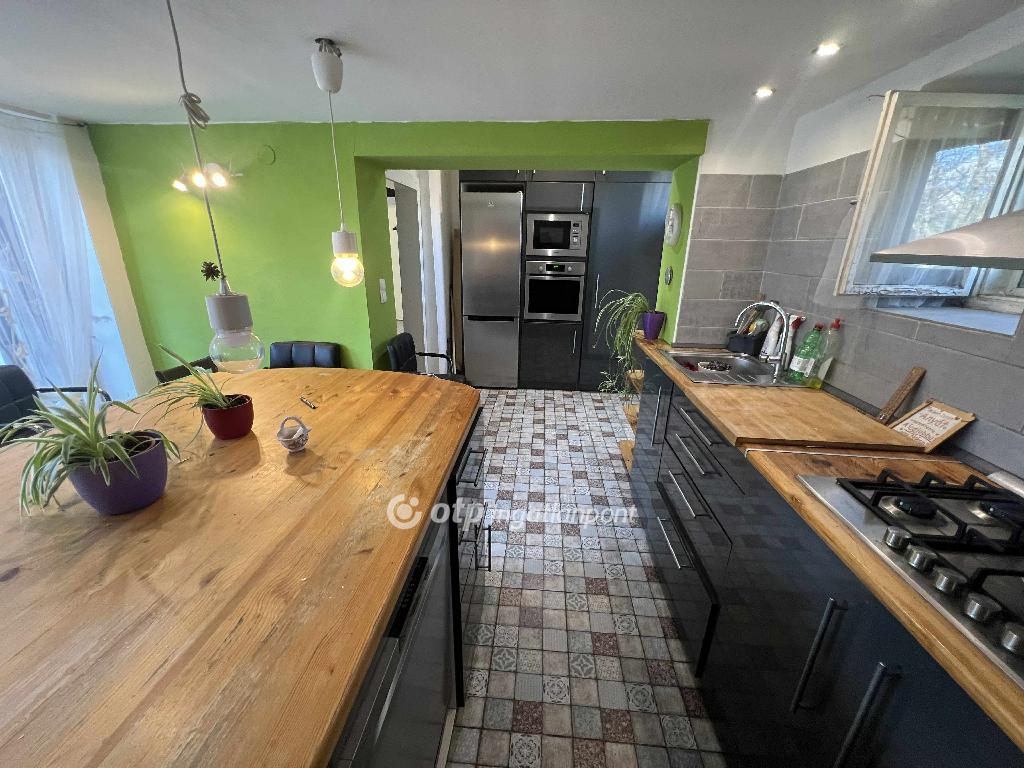 A tágas, teraszra nyíló konyha tolóajtókkal felszerelt, teljesen bútorozott és gépesített, a vételár része a következő berendezés: