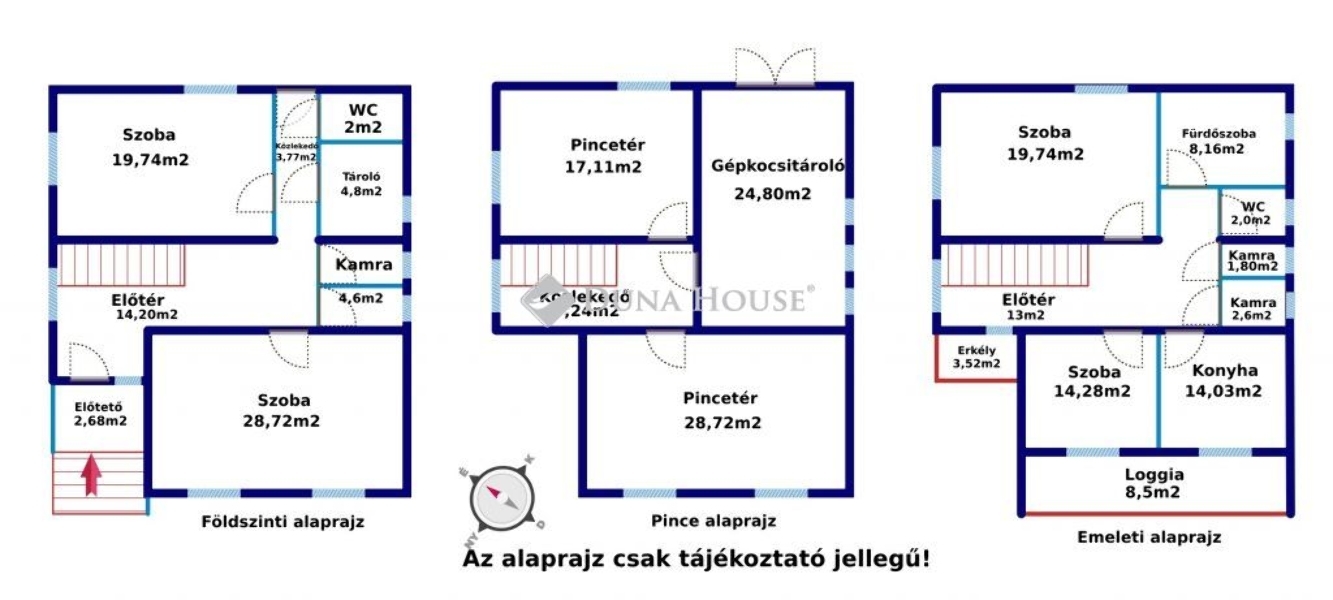 Helyiségeit tekintve 4 szintből áll, alábbiakban sorolom fel négyzetméterek megjelölésével, tájékoztató jelleggel szintenként!