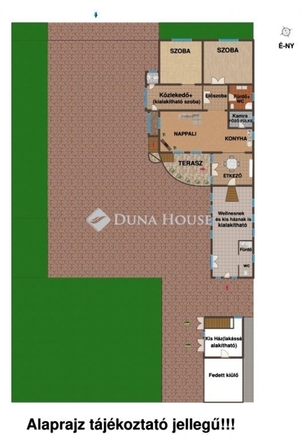 Egy nagy alapterületű főépület, amelyhez külön bejáratú, önálló lakrészként is használható hozzáépítés kapcsolódik