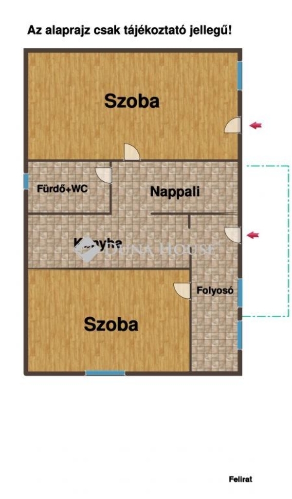 - 2 szoba ,folyosó,konyha,nappali.