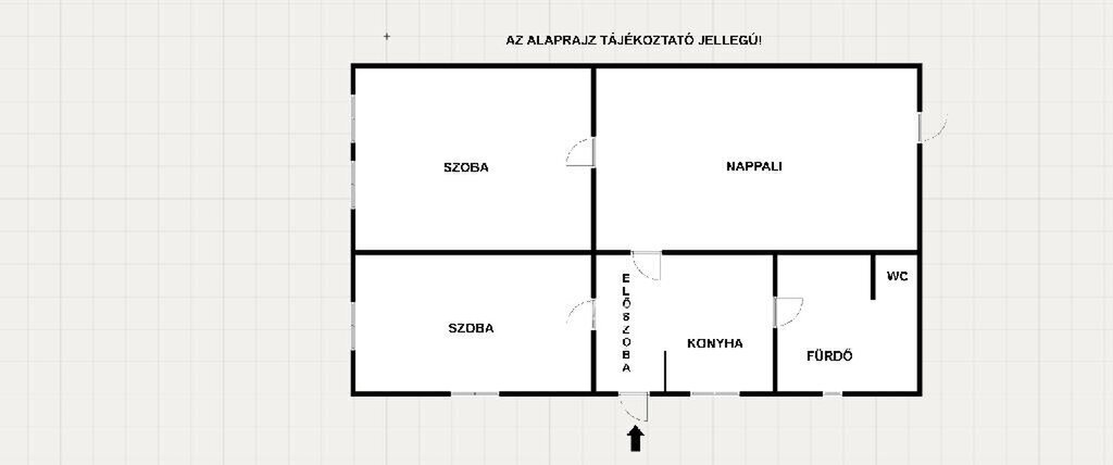 Az ingatlan elrendezése kényelmes és jól élhető: előszoba, 2 szoba, nappali, konyha/étkező, fürdő és külön WC áll rendelkezésre.