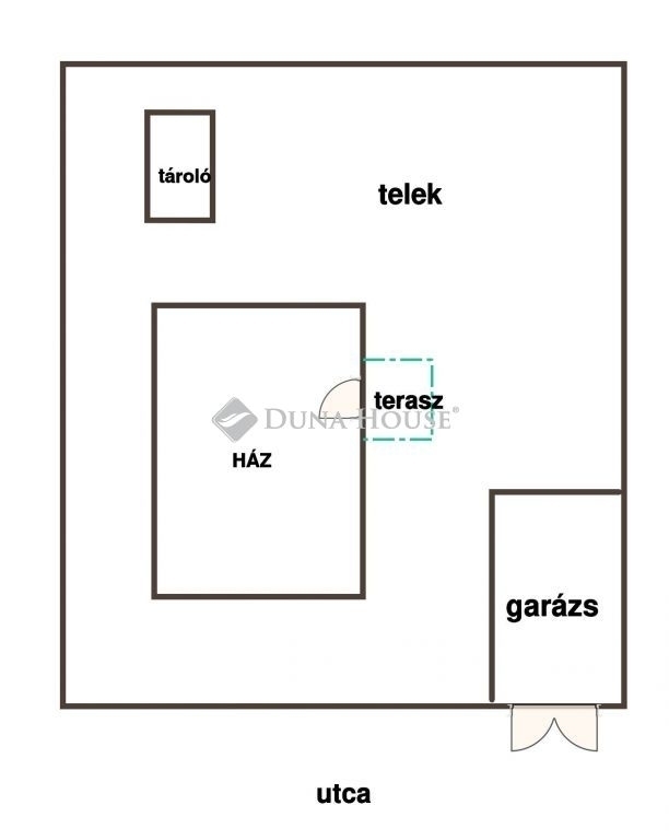 Az utcáról lehet beállni az épülettől külön álló garázsba. A kertben elegendő hely van, hogy az új tulajdonos kialakíthasson pihenő kertet és igény szerint veteményest is.