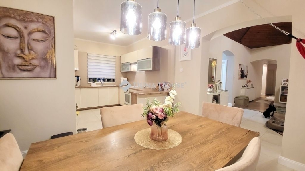 Eladásra kínálunk Tárnokon egy gyönyörű állapotú, 126 négyzetméteres belső hasznos alapterületű családi házat,808nm-es telekkel. Ez a három szobával és nappalival kombinált étkezővel rendelkező ingatlan kiváló választás lehet azok számára, akik a kellemes környezetre és a kényelmes élhetőségre vágyakoznak.Ha Ön értékeli a minőséget és egy jó karban lévő, kész otthont keres, ez a tárnoki ingatlan tökéletes választás lehet. Ne hagyja ki ezt a remek lehetőséget.Az új tulajdonosokat egy komplett, modern konyhabútor és gépek várják, amelyek lehetővé teszik, hogy azonnal otthon érezhessék magukat anélkül, hogy jelentős további beruházásra lenne szükség.A biztonság és a nyugalom elengedhetetlen a pihentető otthonokban, ezért minden ablakon redőnyök és szúnyoghálók vannak felszerelve.Az épület tégla szerkezetű, amely magas szintű stabilitást és hőszigetelést biztosít. A 5+10-es grafitos hőszigetelés mellett, a beton gerendás födémmel felszerelt ház garantálja a lakók komfortját mind a hideg téli, mind a meleg nyári hónapokban. A kényelméről a minden helyiségben felszerelt klíma gondoskodik, míg a fűtést gazdaságos gáz církó rendszer biztosítja, ami szintén hozzájárul az alacsonyabb rezsi költségekhez. ÁR:144.9M