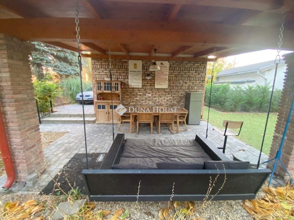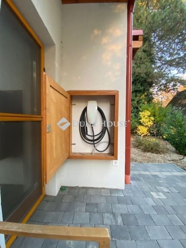 A ház minden részletében a minőségi anyagok használata tükröződik a számos kényelmi funkció mellett. Automata tolókapuk, fedett teraszok, elektromos autótöltő, műfüves mini sportpálya lábtenisznek ,tollaslabdázáshoz, pingpongozáshoz.