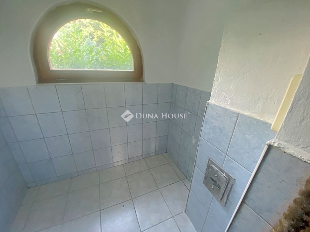 Boltíven keresztül közlekedőbe érünk, szemben egy teljesen burkolt kamra helyiség, jobbra pedig a zuhanyzós fürdőszoba toalettel kapott helyet.