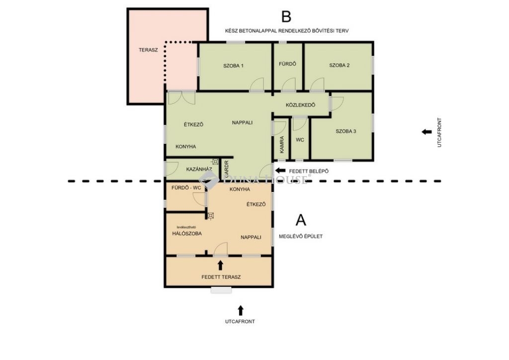 A.) a meglévő épülethez épít hozzá az új tulajdonos, ezáltal egybenyitva egy teljes értékű 130-140 m2-es családi házat kap
