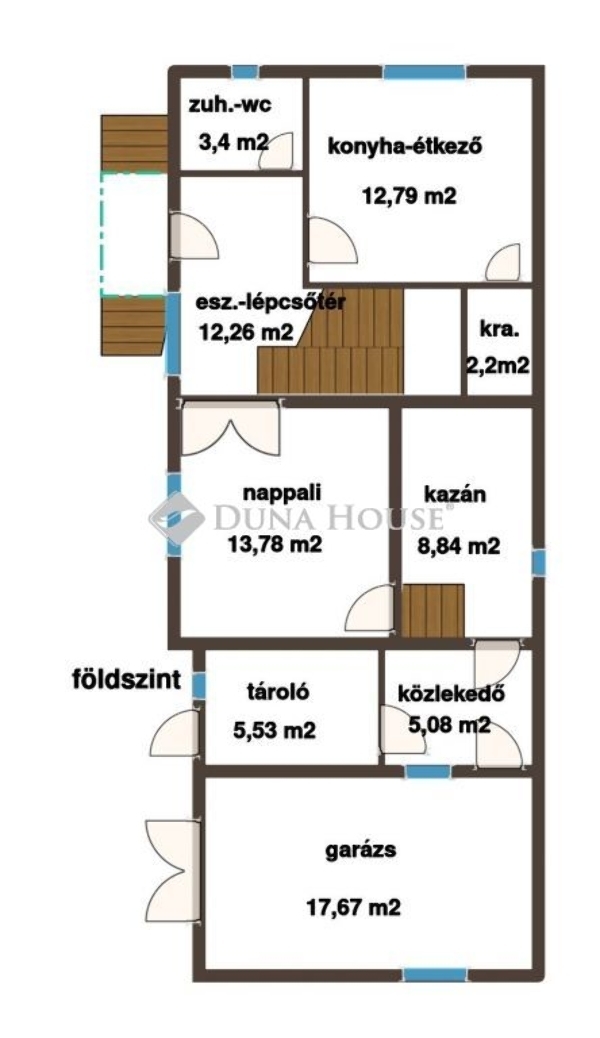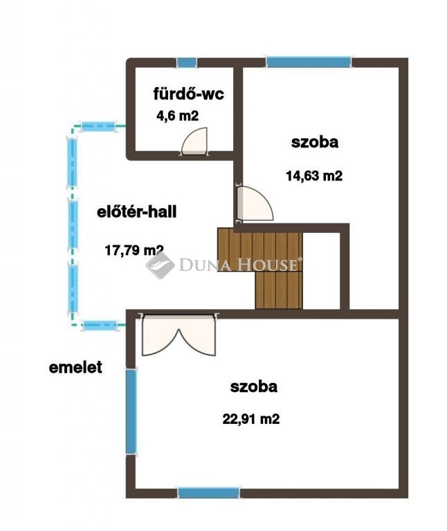 - Földszint (53 m2 + 28 m2 melléképület) + emelet (60 m2) + tetőtér (24 m2 + 6 m2 loggia) kialakítású