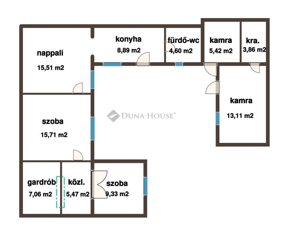 - A lakórész 67 nm, 3 szoba, gardrób, közlekedő, konyha és fürdő-wc helyiségekkel.