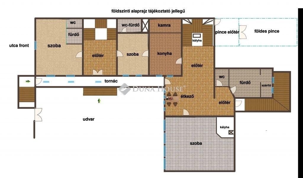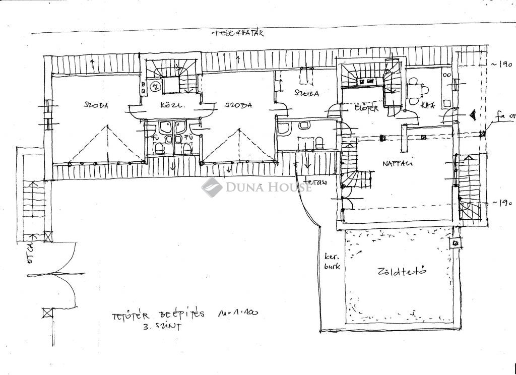 - Szintek: pince földszint beépített tetőtér, szinteltolásos kialakítással