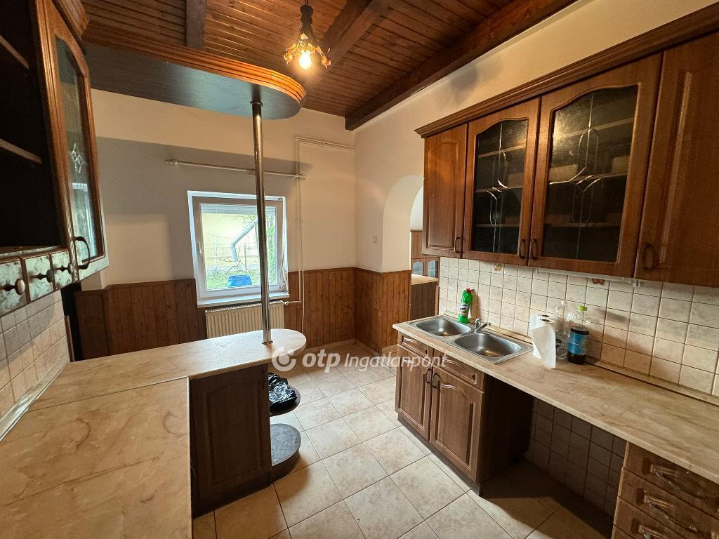 Helyiségek: konyha, étkező, 2 szoba, 1 félszoba, fürdő (kád jelenleg nincs, egyébként összkomfortos lenne), WC (fürdőből nyílik, de külön van), közlekedő, előszoba, előtér, kamra, fűtőhelyiség.