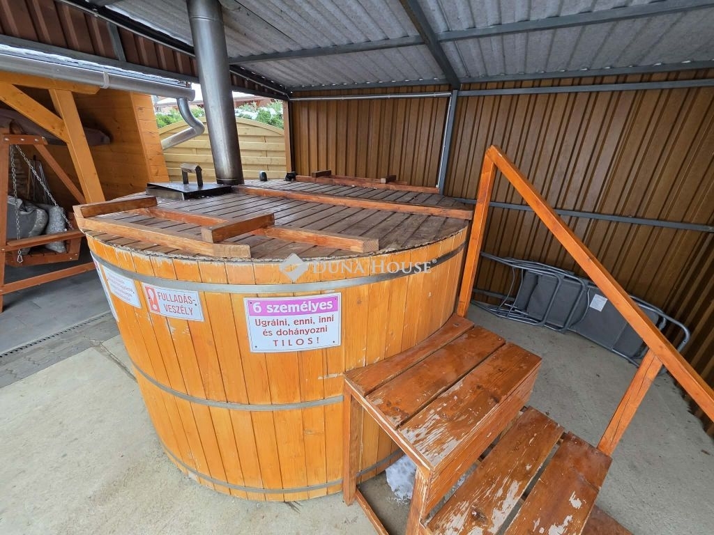 Kivételes lehetőség a Tisza-tónál felújított, wellnesses apartmanház eladó Tiszafüreden! Tiszafüred egyik csendes, rendezett utcájában, a Tisza-tó közvetlen közelében, üdülőövezeti besorolású, 120 m²-es, kétszintes, téglaszerkezetű, teljes körűen felújított ingatlan eladó, amely jelenleg jól működő apartmanként üzemel.Tökéletes választás: befektetőknek (azonnal tovább üzemeltethető) apartmanoztatásra, vendégházként vagy akár két generáció kényelmes együttélésére Az ingatlan főbb jellemzőiTelek: 517 m², parkosított udvarLakótér: 120 m² + 55 m² fedett wellness teraszSzerkezet: téglaÁllapot: felújítottKözművek: összközműves, csatornázottBiztonság: kamerás riasztórendszerAlsó szint:előtérhatalmas, világos nappali / közösségi tér2 szoba + 1 nagyobb szobakülönálló, rendkívül világos konyhakülön fürdő és WCközlekedő, lépcsőtérFelső szint:3 szobafürdőszoba Extrák, amik igazán különlegessé teszikwellness részlegjakuzziinfra szauna55 m²-es fedett teraszkerti sütögetőjátszótérbiciklitárolónagy, privát udvar ElhelyezkedésA Tisza-tó és a szabadstrandok, kerékpárutak, vízi sport lehetőségek néhány perc alatt elérhetők ideális turisztikai környezet, magas kiadhatósági potenciállal. Csak készpénzes vásárlók jelentkezését várjuk!Ha egy azonnal hasznosítható, kiváló állapotú, wellness extrákkal felszerelt befektetési lehetőséget keres a Tisza-tónál, ezt az ingatlant mindenképpen látnia kell! Érdeklődés esetén keressen bizalommal!