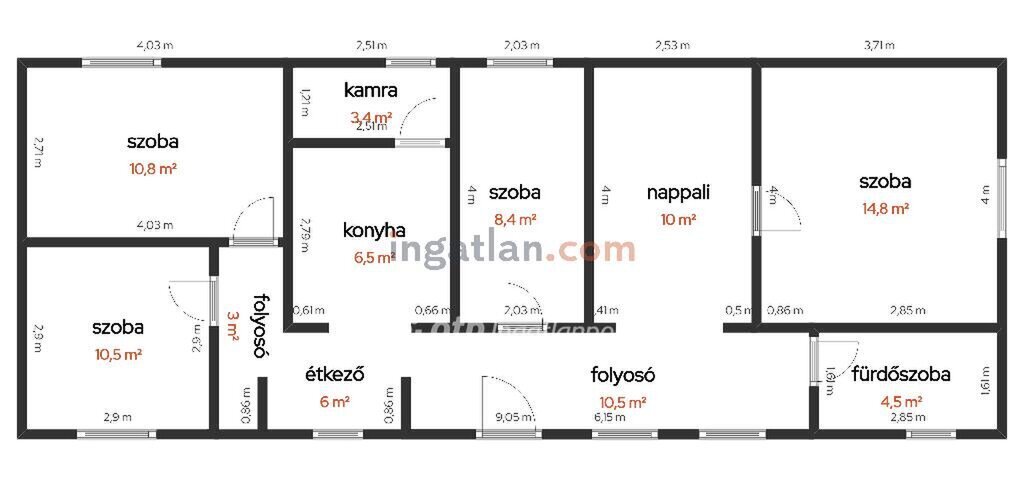 A ház 88,4 nm hasznos alapterületű, tégla alappal és vegyes falazattal épült. Helyiségei: nappali, 3 szoba, konyha, étkező, kamra, folyosó és fürdőszoba, így nagycsaládosok számára is ideális választás lehet.