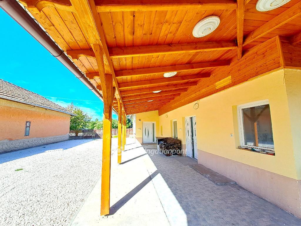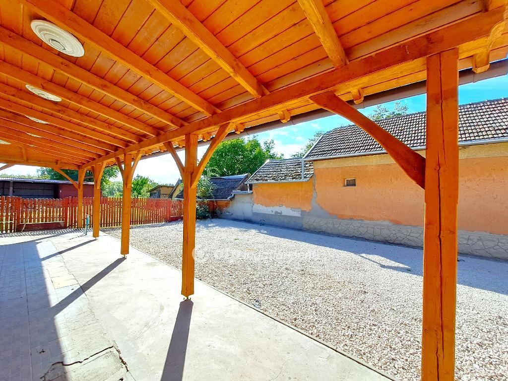 Bács-Kiskun vármegye, Tiszakécske Tiszabög részén 121 m2 hasznos alapterületű családi ház 1647 m2-es telken eladó. Az 1970-es években épült szabadon álló családi ház vegyes falazattal, stukatoros szigetelt és álmennyezettel ellátott födémmel, fa tetőszerkezeten égetett cserép- és lemezborítással készült, körben csatornával ellátott. A homlokzat átlagos állapotú, festett és kőporozott. A külső nyílászárók műanyagra cseréltek, redőnnyel és szúnyoghálóval ellátottak, a belsők jó állapotú fa szerkezetűek. Az ingatlan egy amerikai-konyhás nappalival, három szobával, egy előszobával, egy fürdőszoba-WC helyiséggel, egy közlekedővel, egy kazánházzal, egy mosókonyhával és egy 55 m2 nagyságú fedett terasszal rendelkezik. A telken további melléképületek is helyet kaptak, melyből 60 m2 gazdasági épület létesült, valamint felépült egy részben zárható, három egységből álló, összesen 70 m2 nagyságú lemezgarázs is. A ház helyiségei parketta-, hajópadló- és járólap borítást kaptak.