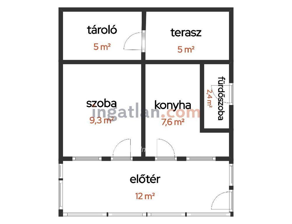 Az ingatlan praktikus elrendezésű, tartozik hozzá 1 szoba, előszoba, konyha, fürdőszoba, hátsó tároló, kis fedett terasz.