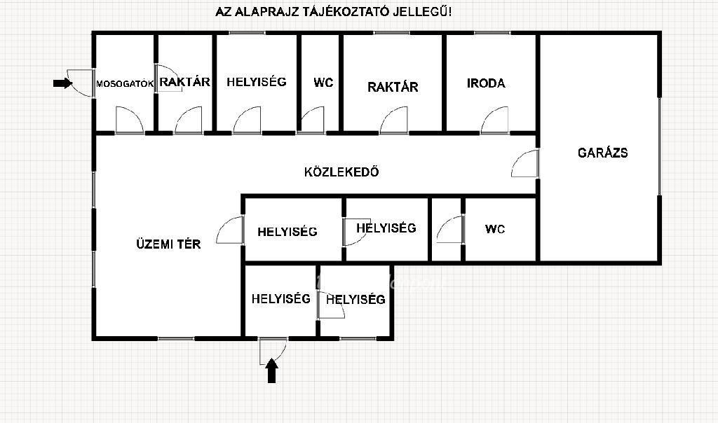 Az üzletben többek között egy üzemi rész, közlekedő, előtér, 2 WC, öltözők, mosogatók, raktárak találhatók.