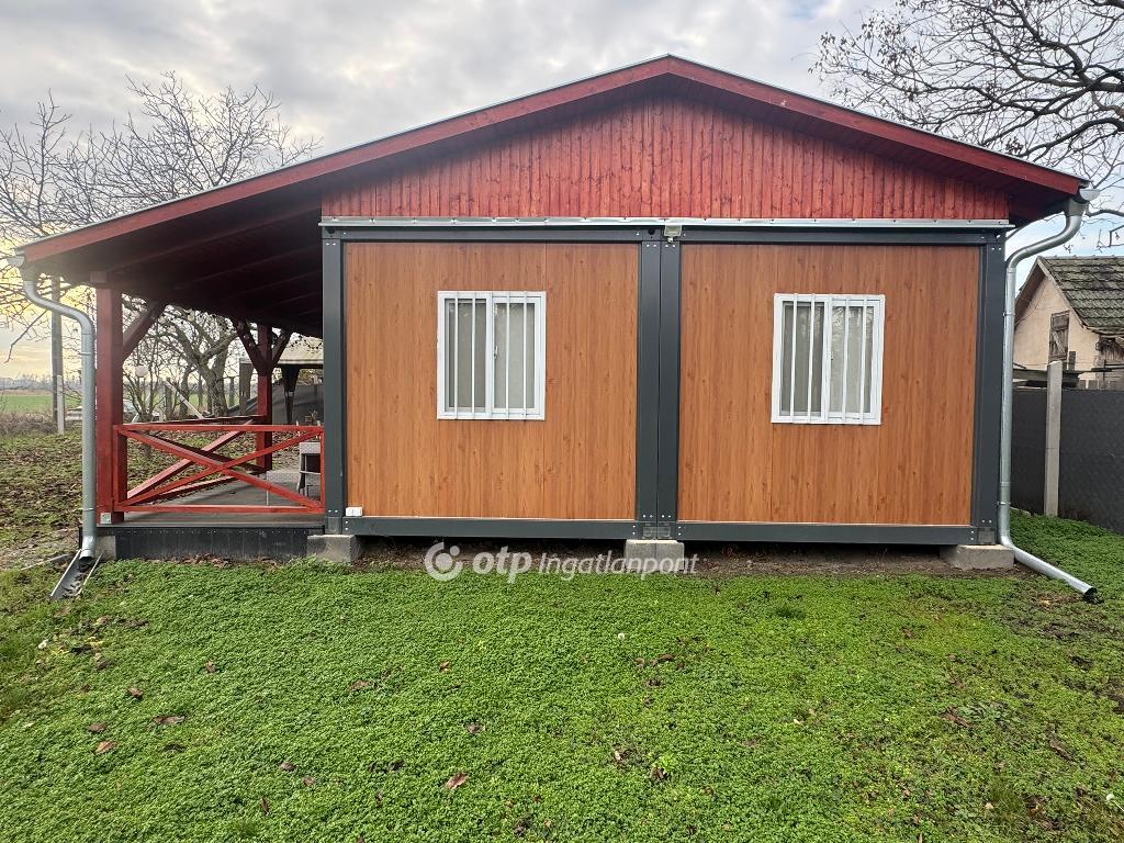 TISZASZŐLŐSÖN ELADÓ EGY 2024-BEN ÉPÜLT, 1 SZOBÁS, 30,69 M2 HASZNOS ALAPTERÜLETŰ (+TERASZ+TÁROLÓ), AZONNAL KÖLTÖZHETŐ NYARALÓ, CSENDES UTCÁBAN, JÓ KÖRNYÉKEN, A TISZÁTÓL LÉGVONALBAN 2,2 KM-RE!!! Az épület könnyűszerkezetes, tetőn cserepeslemez. A ház mögött kb. 2 m2 könnyűszerkezetes tároló.