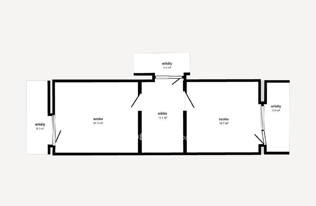 Az ingatlan három nagy méretű szobával, konyhával, fürdőszobával és külön WC-vel rendelkezik. Az emeleti szinten három erkély található, amelyek világosabbá és kellemesebbé teszik a lakótereket.