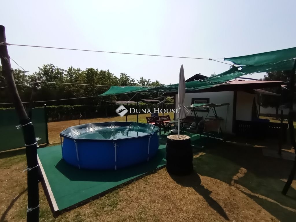 A ház mögötti részen egy kellemes sütögetős-medencés udvar lett kiépítve, a telek egy része szépen parkosított, másik része művelésre alkalmas, gondozott, kaszált.