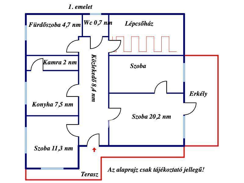 Ez a háromszobás, kétszintes, felújítandó családi ház 146,6 négyzetméter alapterületen helyezkedik el, egy 935 négyzetméteres telken. Az ingatlan alsó és felső szintje külön bejárattal rendelkezik, amely kívülről is megközelíthető, így ideális választás két generáció számára is.