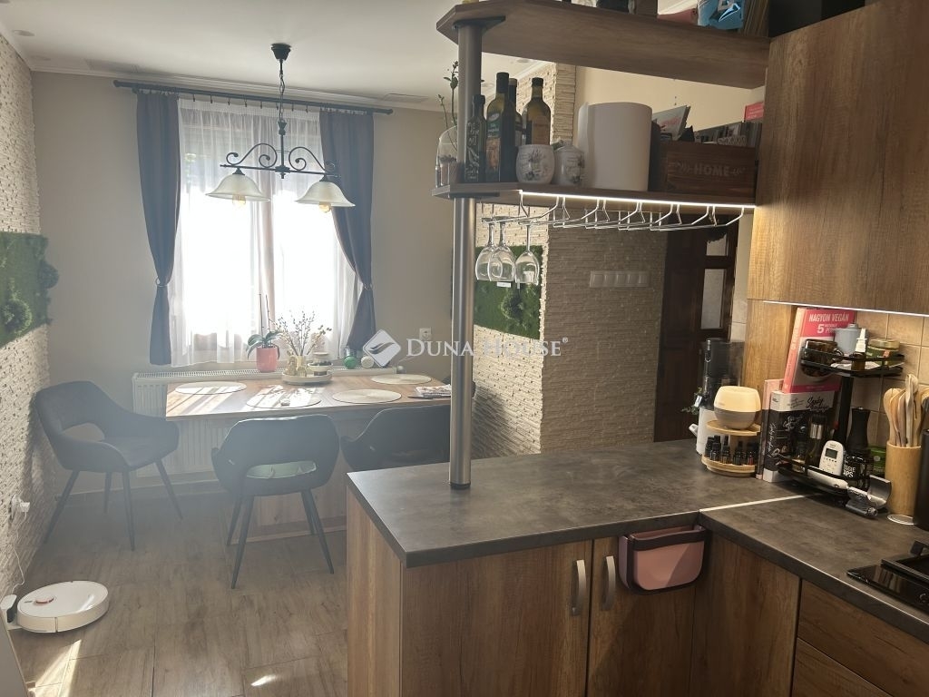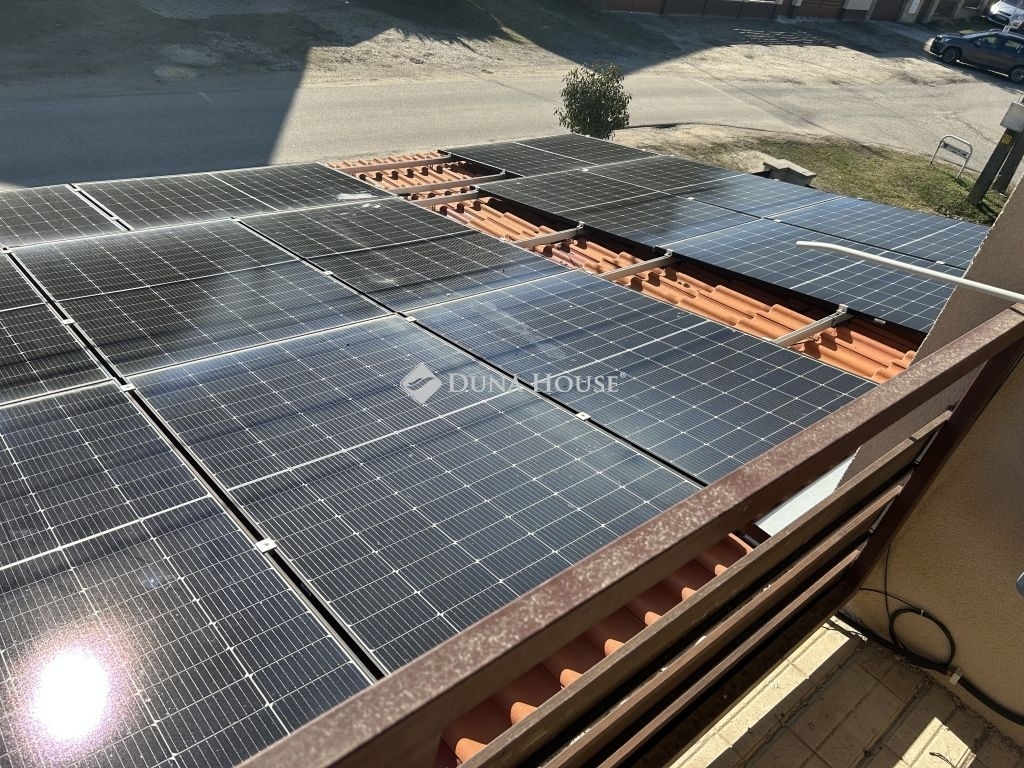 Tolna Újtelep részén, kedvelt utcában eladásra kínálok egy 147 m-es kétszintes családi házat 728 m2-es sarok telekkel. A tégla falazatú, cserép fedésű lakóházban nappali, 3 szoba, gardrób, konyha+étkező, fürdőszoba, 2 wc háztartási helyiség valamint egy Hörmann ajtóval ellátott garázs kapott helyet. A földszinten és az emeleten is két fedett terasz, található. A nappaliból nyíló terasz burkolattal illetve ponyvával lett ellátva, így télikertként is használható. A teljes víz-, szennyvíz-, villany-, gázhálózat felújításra került. Áramellátás 3 fázis, 3x32 A. A vízvezetéken vízlágyító berendezés beépítése történt. A házon 17 kW-os napelemrendszer került elhelyezésre, mely 2032-ig saldo-s elszámolású. A rendszer kiépítésével az áram + fűtés + elektromos autó töltés költsége díjmentesre kalkulálható. A gázkazánnal kialakított központi fűtés mellett 6 darab klíma is felszerelésre került. A nappalban, az egyik emeleti szobában és a fürdőszobában padlófűtés található. A teljes lakóházban a burkolatok cserélve lettek. Az ingatlan kívülről 10 cm, a födém pedig 40 cm-es szigetelést kapott. A kert parkosított, öntözőrendszerrel van ellátva, fúrt kút is rendelkezésre áll. Új kerítés mindkét utcai oldalon, valamint a kocsibeálló és a járdaszakasz is térköves. A z udvaron helyet kapott egy 30 m2-es garázs, kettő 15 m2-es tároló és egy 45 m2-es kerthelyiség. A garázsban elektromos autótöltő lett beépítve. Mindkét garázsbejárónál elektromos úszókapuval található.Amennyiben felkeltettem érdeklődését, hívjon bizalommal!
