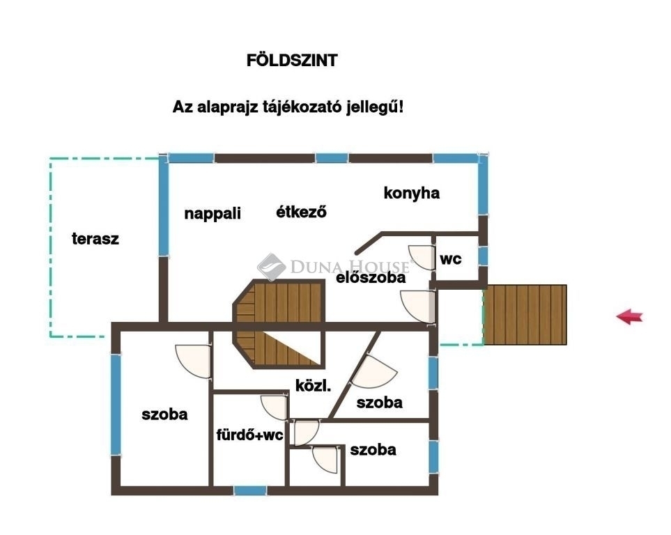 Földszint: a ház szíve egy kb. 60 m²-es napfényes nappaliétkezőkonyha egység közvetlen teraszos-kertkapcsolattal; hangulatról a bioetanol kandalló gondoskodik. További helyiségek: szülői háló, fürdőszoba WC-vel, dolgozószoba, vendégszoba saját zuhanyzóval és WC-vel.