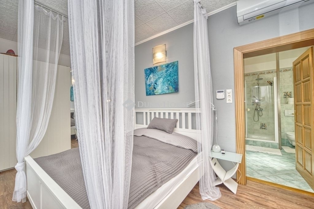 Emelet: parkettás hálószobák ( 4 db), tágas fürdő padlófűtéssel; az emeleti fürdő melletti szoba eredetileg konyhaként működött, a víz/lefolyó kiállások burkolat alatt megvannak könnyen visszaalakítható, így kétgenerációs használat is egyszerűen megoldható.