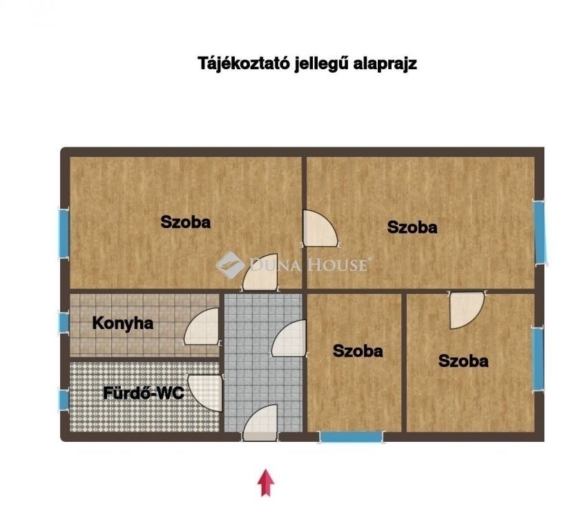 Az ház jellemzői:60 nm-es, összkomfortos 3 és félszoba, konyha, fürdőszoba.