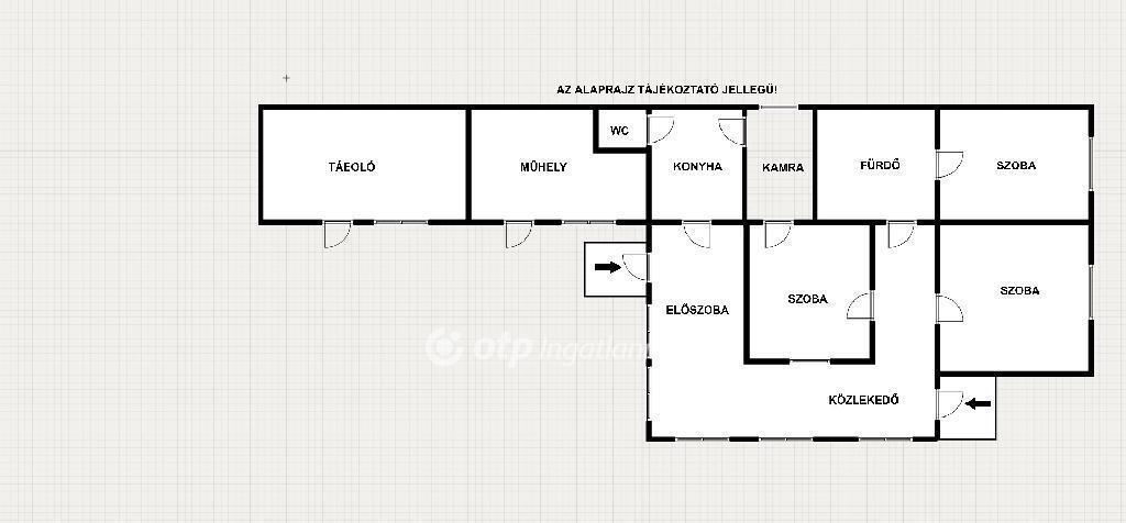 A házban egy nappali, 3 szoba, közlekedő, konyha/étkező, spejz és egy fürdő/wc található.