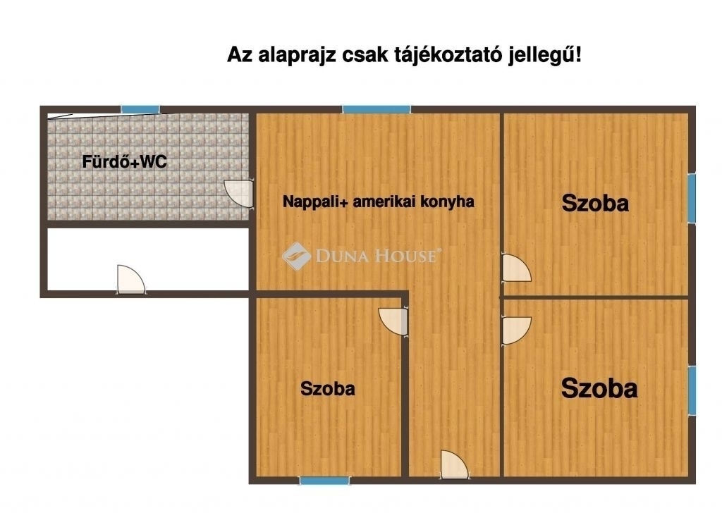 A helyiségek tekintetében kialakításra került: nappali+amerikai konyha, 3 szoba, fürdő +wc.