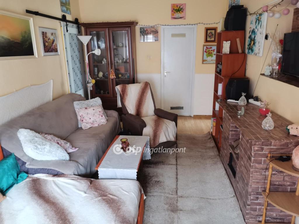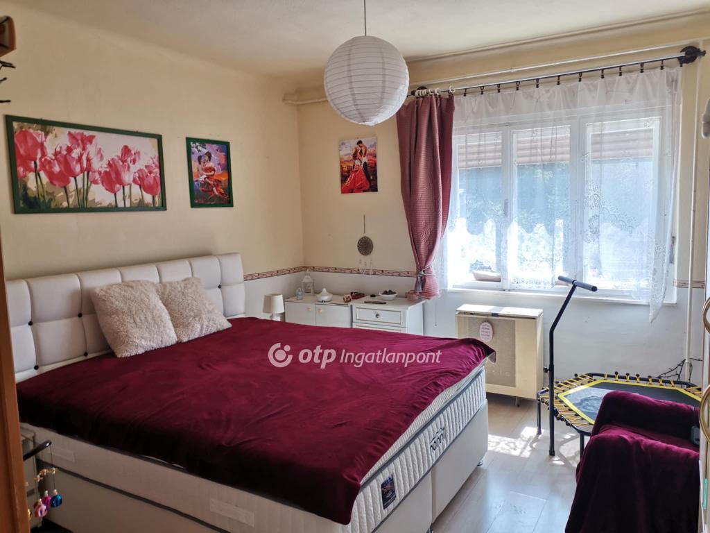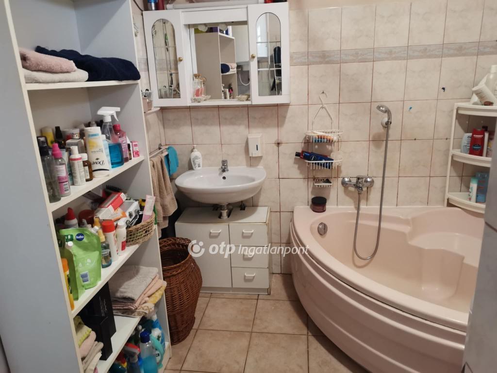 A konyha, fürdőszoba járólappal borított, míg a többi helységben laminált parketta a burkolat. A fa nyílászárók jó állapotúak.