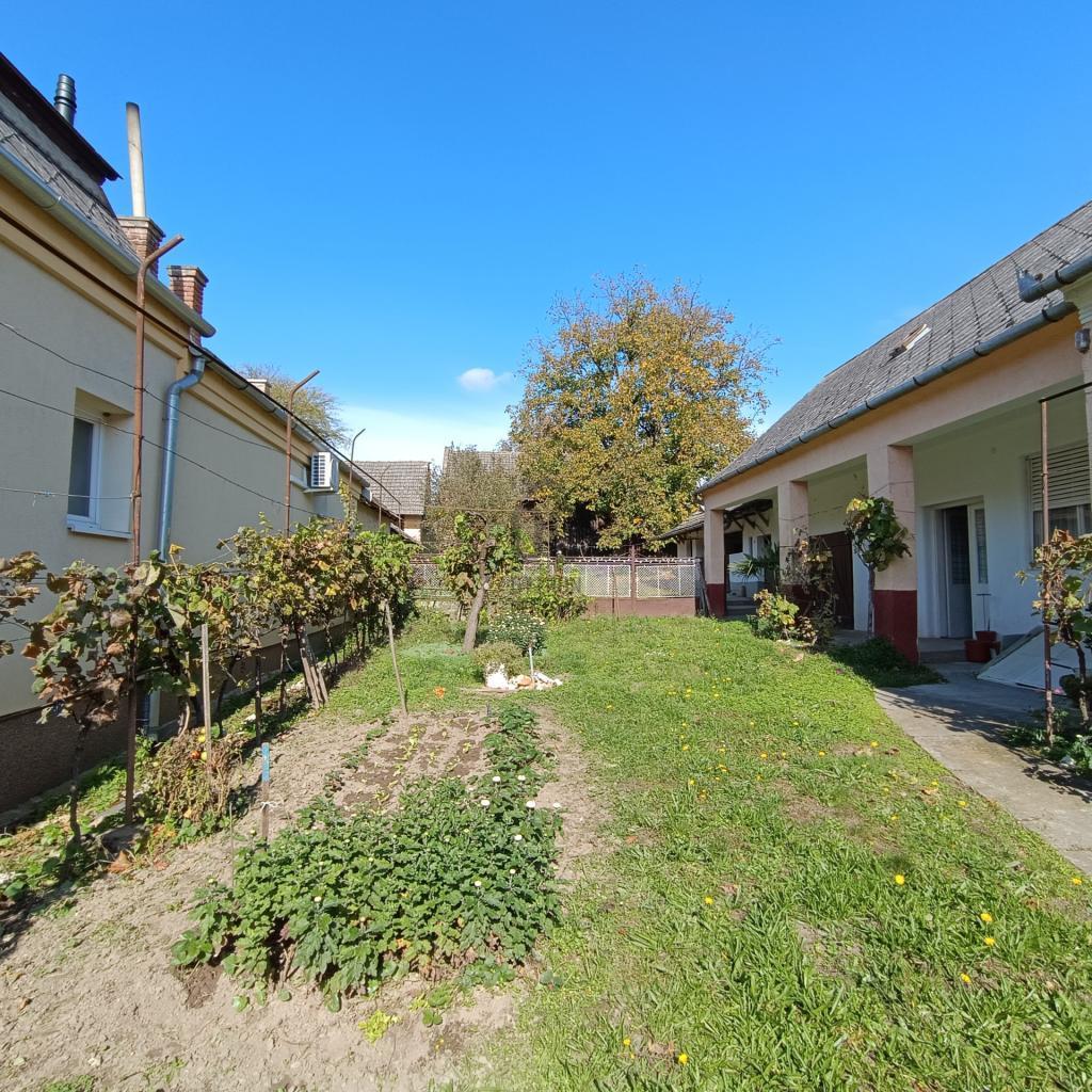 A telek 2133 m2-es, a kertig teljesen körbe kerített,gondozott, több gyümölcsfával beültetett. Pl. cseresznye, körte, alma, barack, dió, szilva, szőlő