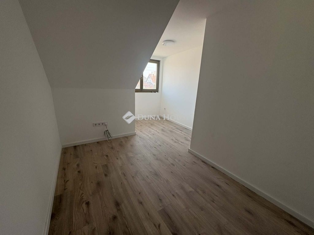 A lakás két szintes, tetőtér-beépítéses, korszerű műszaki tartalommal rendelkező ingatlan, saját tulajdonú telekrésszel.