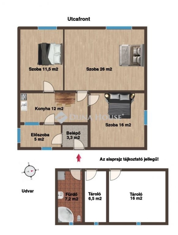 A 26 m2-es szoba akár meg is osztható, ha igény van rá, illetve egy belső fürdőszoba is kialakítható az egyik szobából leválasztva.