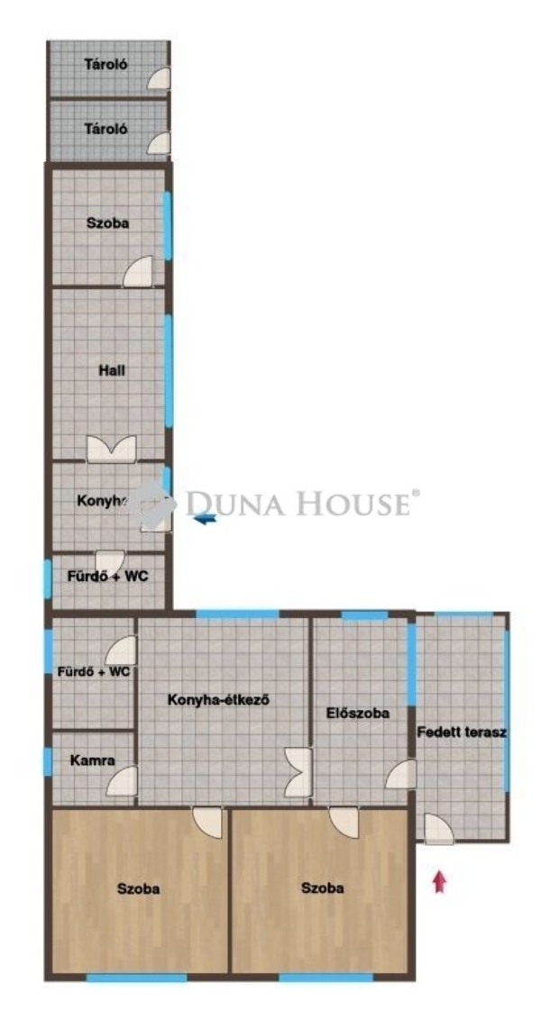 A két lakrész összeépíthető, így akár egy nagyobb egységként is használható a jövőben.