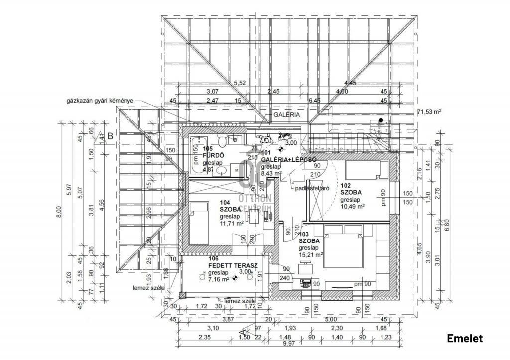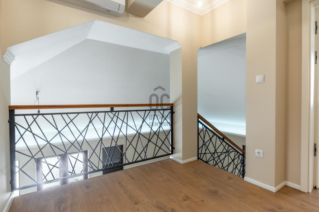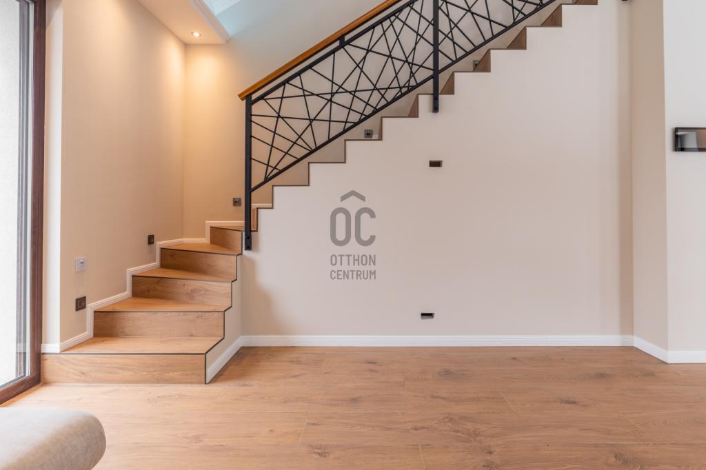 A nappali részben galériás kialakítású, dupla belmagasságával lenyűgöző térérzetet nyújt