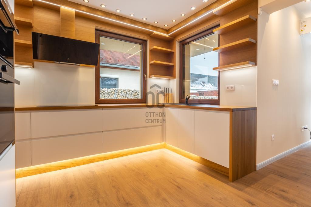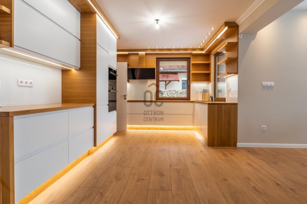 Az egyedileg tervezett modern konyhabútor gépesített és a vételár részét képezi.