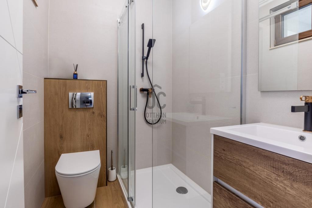 Ezen a szinten található egy zuhanyzós fürdőszoba WC-vel.