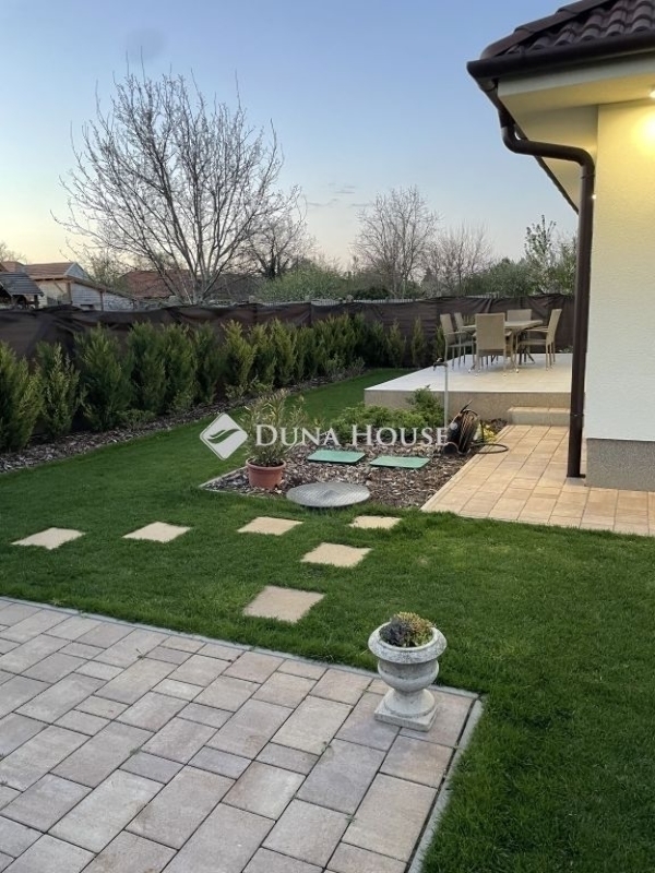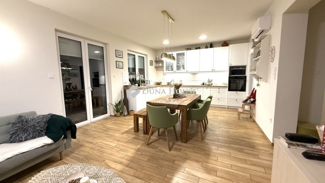 Üllő csendes kertvárosában új tulajdonosát keresi kiváló állapotú családi házA 2022-ben magas minőségben épült ház 601 m²-es telken áll, amely egy használati megosztási szerződéssel rendezett telek belső fele a bejárás kizárólagos használatú, elektromos kapuval ellátott úton biztosított. A parkosított, vakondhálóval ellátott kert öntözését fúrt kút és kiépített öntözőrendszer könnyíti meg, a kerti szerszámok tárolására külön kisház áll rendelkezésre.A téglaépítésű ház 112 m² hasznos alapterületű, melyet kiegészít egy 18 m²-es (jelenleg nem fedett) terasz, valamint a bejárati ajtó előtt található, fedett belépő. Az átgondolt alaprajzi elrendezésnek köszönhetően kényelmes, akár többgyermekes család számára is élhető, tágas terekkel rendelkezik. Helyiségek:Amerikai konyhás nappali4 hálószobaFürdőszoba zuhanyzóval és illemhellyelFürdőszoba káddal és illemhellyelHáztartási helyiségKamraTágas előszobaA ház melegéről 15 cm külső hőszigetelés, 30 cm födémszigetelés, kombi cirkó gázkazán, továbbá 5 db hűtő-fűtő klíma gondoskodik, az előállított hő benntartását a háromrétegű üvegezéssel ellátott nyílászárók biztosítják. A minőségi otthon érzetét nagymértékben erősítik az ízléses, egyedi tervezésű beépített bútorok.Infrastrukturális szempontból kiválóan ellátott környék, a vasútállomás pár perc alatt gyalogosan is elérhető, autóval pedig könnyedén a fővárosba juthatunk. Jó szívvel ajánlom többgyermekes családnak vagy ilyen tervekkel rendelkező fiatal párnak, home office-ban dolgozóknak.A hirdetésben feltüntetett, 3%-os hitelre vonatkozó támogatást Magyarország Kormánya nyújtja.