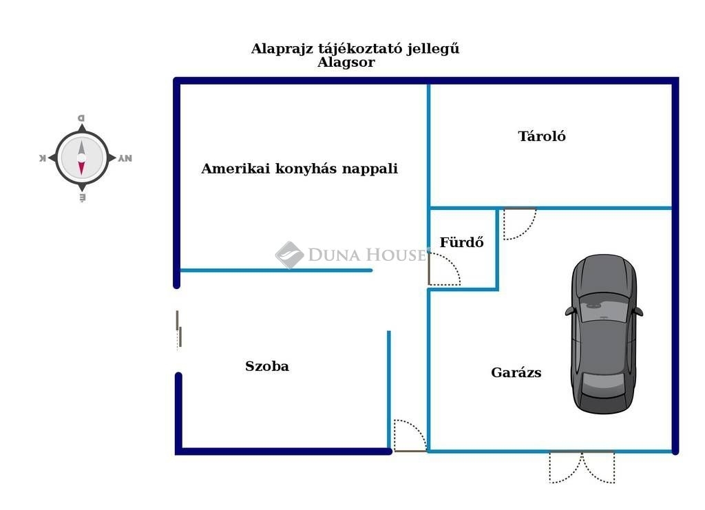 Az alsó szint (163 nm) egy 46 nm-es garázzsal, tárolóval, kazánházzal, gardróbbal és egy 55 nm-es lakótérrel (amerikai konyhás nappali, szoba, fsz+WC) rendelkezik, amelyből egy 17 nm-es terasz nyílik.