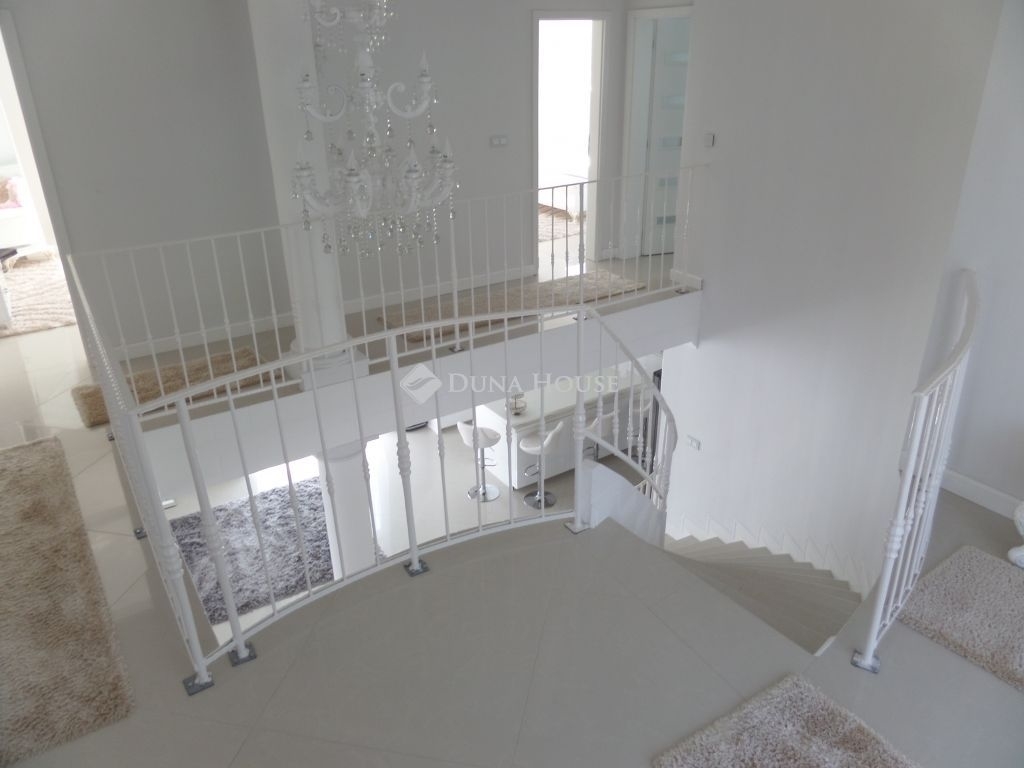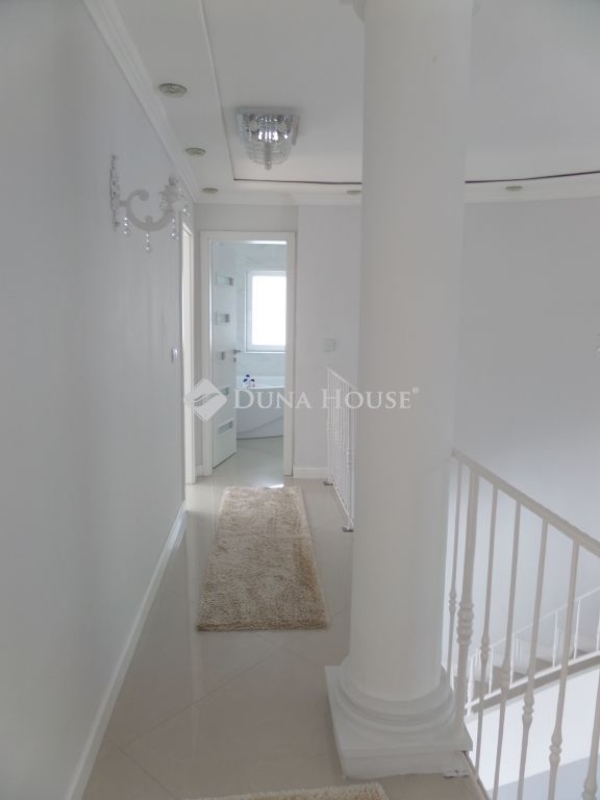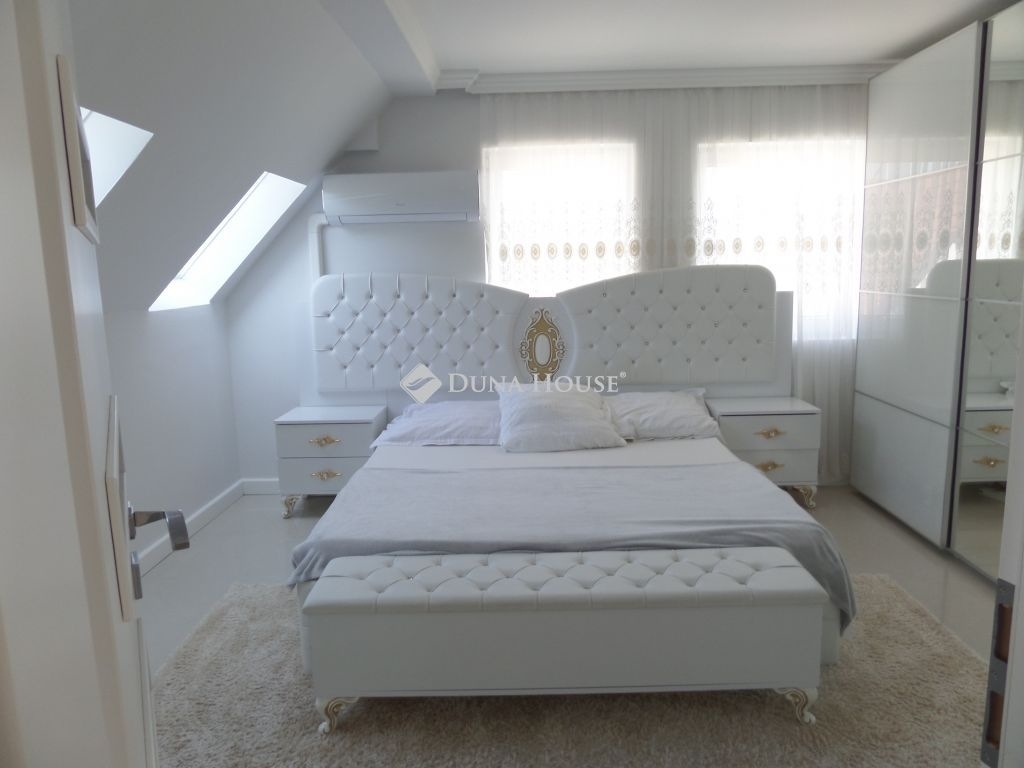 Megvételre kínálunk Üröm, Sadove városrészében, a város nyüzsgésétől távol, egy 896 négyzetméteres telken álló, 2022-ben épült luxus családi házat. Az ingatlan 255 négyzetméteres alapterületén minden részlet gondosan megtervezett, hogy Ön és családja számára a legmagasabb életszínvonalat biztosítsa.A két szintes ház nappalija hatalmas ablakokon át fürdik a napfényben, mely az étkezővel egybe nyitott, tágas térként szolgál a közös pillanatokhoz. A modern, gépesített konyha minden igényt kielégít, míg az 5 hűtő-fűtő klíma a legnagyobb melegben is kellemes hűvöset biztosít. Az emeleten négy külön nyíló szoba található, melyek mindegyike tökéletesen megfelel egyéni igényeknek, legyen szó hálószobáról, dolgozószobáról vagy gyerekszobáról.Az otthon biztonságáról riasztó- és kamerarendszer gondoskodik, míg a dupla thermoplan üvegezésű ablakok nemcsak a hőszigetelést, de a nyugalmat is garantálják. A ház fűtéséről korszerű elektromos padlófűtés gondoskodik, amely a hidegebb hónapokban is egyenletes, kellemes meleget biztosít, miközben az alacsony energiafogyasztást szem előtt tartja. A tetőn elhelyezett 19 kW-os napelem rendszer pedig a rezsiköltségeket szinte nullára csökkenti.A kertben fúrt kút biztosítja a vízellátást, míg a fűtött, világított medence egész évben a kikapcsolódás helyszíne lehet. A több autó számára is kényelmes parkolást biztosító helyek pedig további kényelmet nyújtanak a mindennapokban.Lépjen most, és legyen Ön az, aki ezt a kivételes házat új otthonává teszi! Hibás hirdetés bejelentése