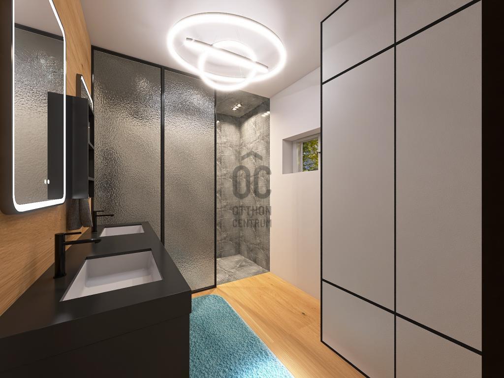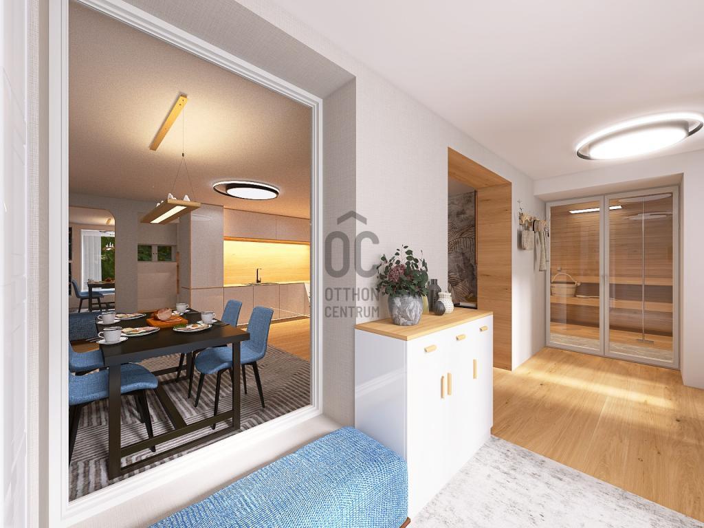 A földszinten kialakított szauna és zuhanyzó külön értéket képvisel, kényelmes wellness-részt biztosít a házon belül.