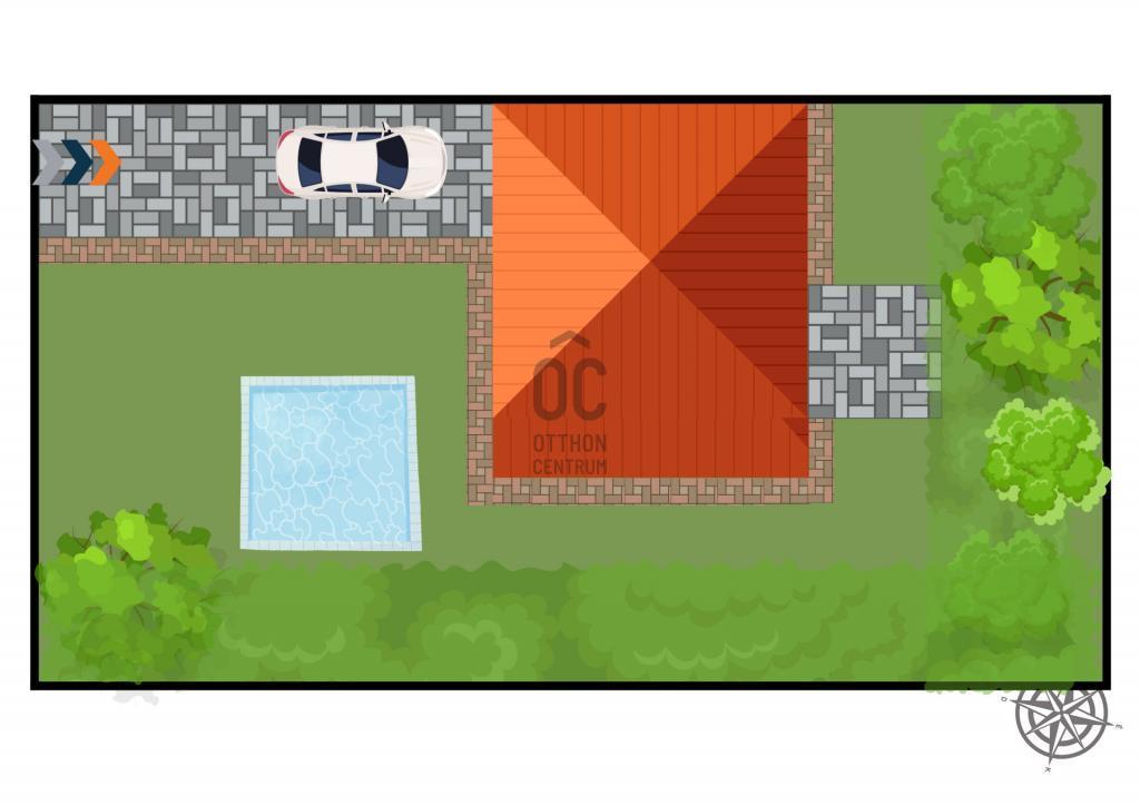 A telek sík, jól kihasználható, a kertben kialakításra került egy teraszos pihenőrész.