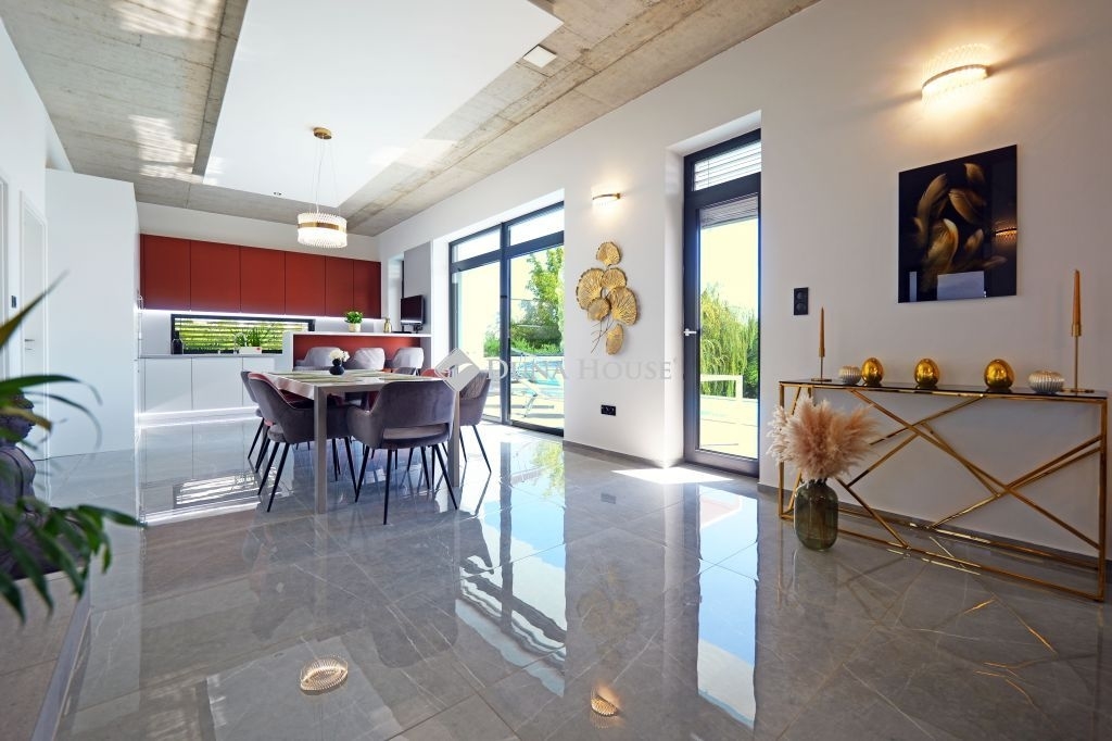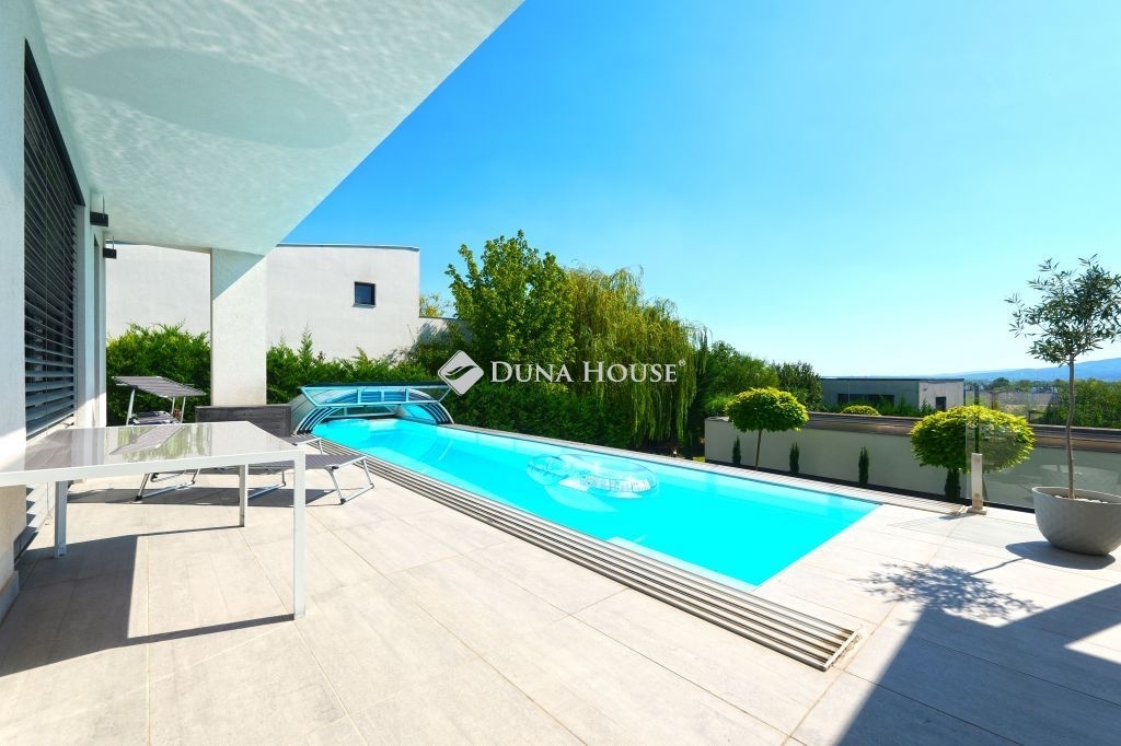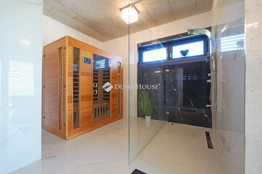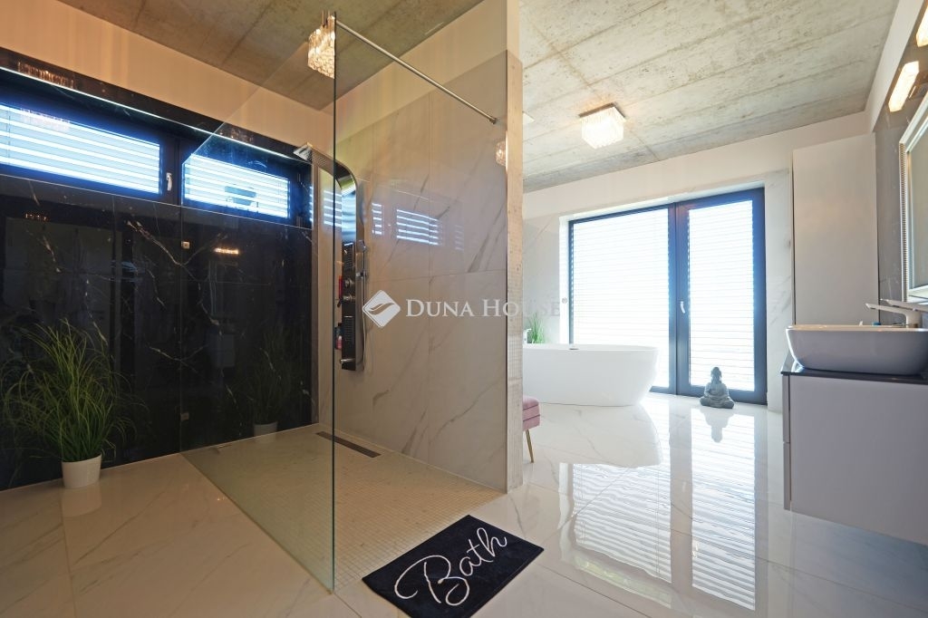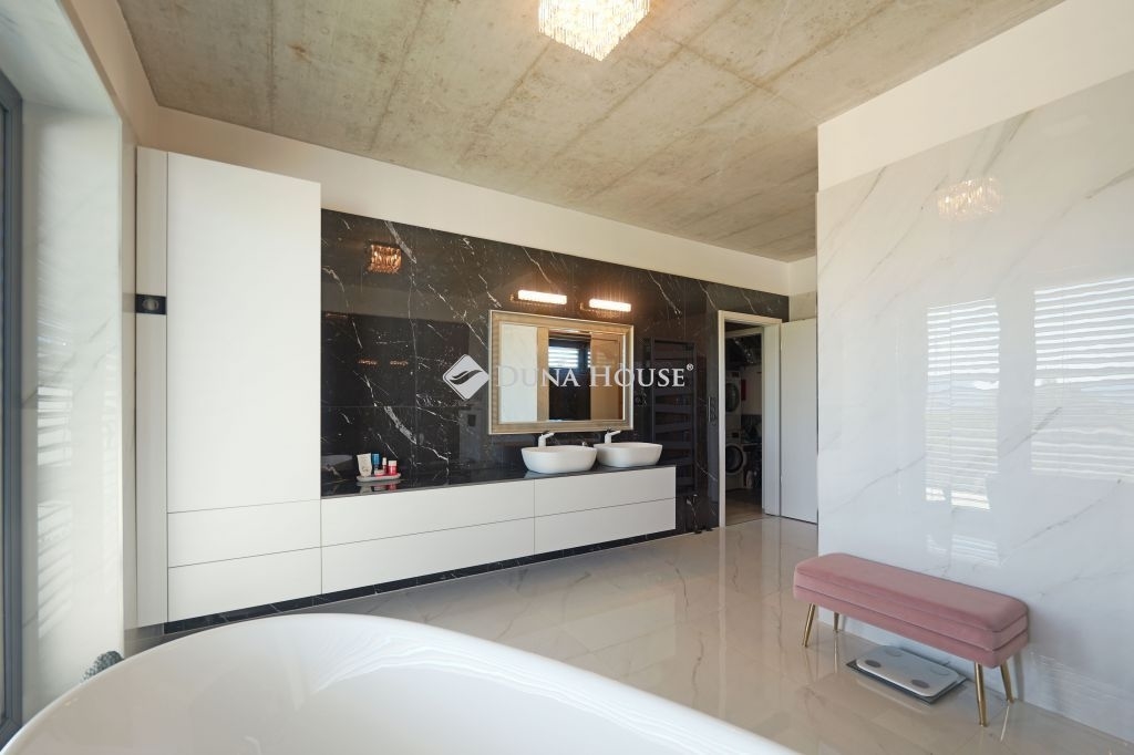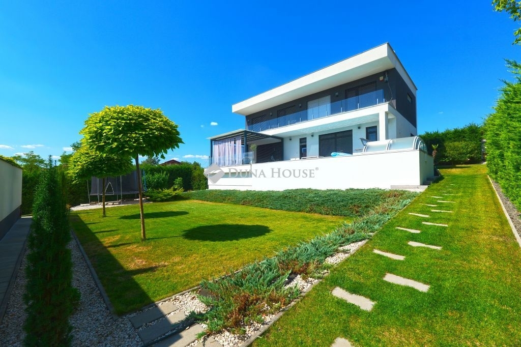 Vác legexkluzívabb otthona ahol a luxus és a harmónia találkozikVácon, a város egyik legmodernebb, legkedveltebb részén vár rád ez a lenyűgöző, új építésű minimál villa, amely minden négyzetméterében a prémium minőséget, a kifinomult eleganciát és a kényelmet sugározza.343 m² lakótér, 1200 m² parkosított telek, medence, szauna, 5 autós beálló ez nem csupán egy ház, hanem életérzés.Ne csak házat keress találd meg az igazi otthonodat, ahol minden részlet rólad szól!________________________________________ A főépület (273 m²) 77 m²-es, háromállásos garázs Tágas földszint: amerikai konyhás nappali, étkező, kamra, vendégfürdő, játszósarok (14 m² akár külön szoba is lehet), valamint egy dolgozószoba Emelet: szülői lakosztály gardróbbal és privát fürdővel, két gyerekszoba, 23 m²-es fürdő infra szaunával, plusz egy félszoba________________________________________ Vendégház (70 m²) 36 m²-es apartman (jelenleg konditerem) ideális vállalkozásra, vendégszobának vagy lakrészként 34 m²-es, kétállásos garázs________________________________________ Kültér & extrák 1200 m² parkosított kert automata öntözőrendszerrel 70 m²-es, részben fedett terasz 9 x 2,5 m beépített, fóliázott úszómedence 30 m²-es emeleti erkély Beépített infra szauna az emeleti fürdőben________________________________________ Műszaki tartalom a modern technológia szolgálatában 30-as Porotherm falazat + 16 cm grafitos szigetelés 3 rétegű nyílászárók elektromos zsalúziával Hővisszanyerős légtechnika, 10 kW napelem Padlófűtés, klímák, gépesített konyhabútor Elektromos kapunyitás, kamerás kaputelefon, riasztórendszer________________________________________Ez az ingatlan tökéletes választás azoknak, akik nem érik be a hétköznapival.Itt a modern technológia, a tágas terek és a wellness-élmény valódi otthonná olvad össze. Ha mindig is arról álmodtál, hogy egy helyen éld meg a luxust, a nyugalmat és a természet közelségét ez az otthon rád vár! Hibás hirdetés bejelentése
