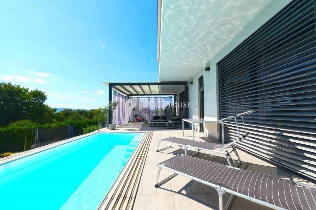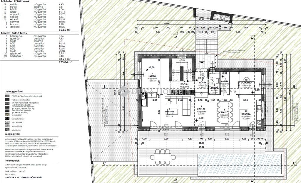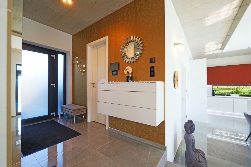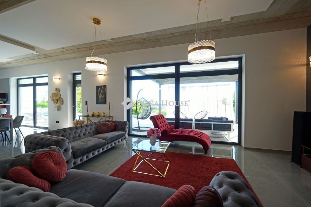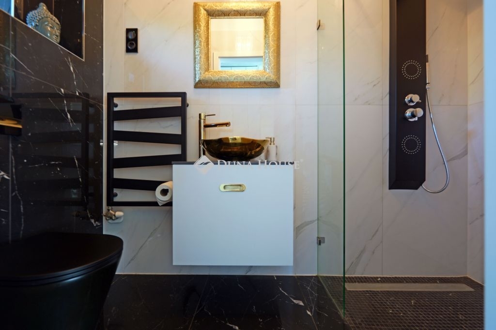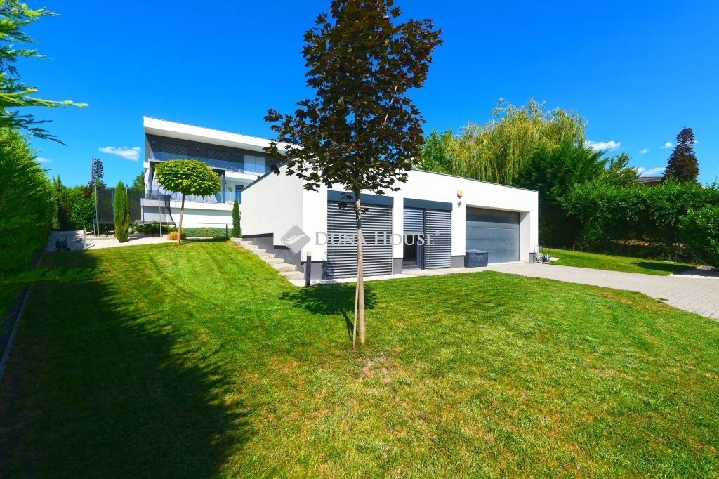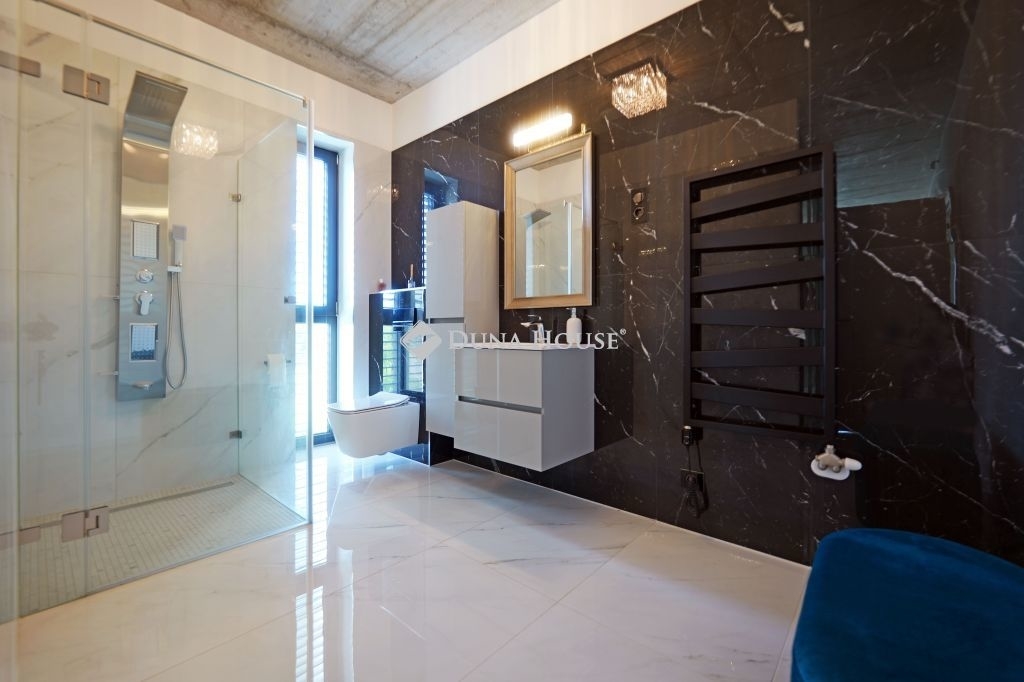 Vác legexkluzívabb otthona ahol a luxus és a harmónia találkozikVácon, a város egyik legmodernebb, legkedveltebb részén vár rád ez a lenyűgöző, új építésű minimál villa, amely minden négyzetméterében a prémium minőséget, a kifinomult eleganciát és a kényelmet sugározza.343 m² lakótér, 1200 m² parkosított telek, medence, szauna, 5 autós beálló ez nem csupán egy ház, hanem életérzés.Ne csak házat keress találd meg az igazi otthonodat, ahol minden részlet rólad szól!________________________________________ A főépület (273 m²) 77 m²-es, háromállásos garázs Tágas földszint: amerikai konyhás nappali, étkező, kamra, vendégfürdő, játszósarok (14 m² akár külön szoba is lehet), valamint egy dolgozószoba Emelet: szülői lakosztály gardróbbal és privát fürdővel, két gyerekszoba, 23 m²-es fürdő infra szaunával, plusz egy félszoba________________________________________ Vendégház (70 m²) 36 m²-es apartman (jelenleg konditerem) ideális vállalkozásra, vendégszobának vagy lakrészként 34 m²-es, kétállásos garázs________________________________________ Kültér & extrák 1200 m² parkosított kert automata öntözőrendszerrel 70 m²-es, részben fedett terasz 9 x 2,5 m beépített, fóliázott úszómedence 30 m²-es emeleti erkély Beépített infra szauna az emeleti fürdőben________________________________________ Műszaki tartalom a modern technológia szolgálatában 30-as Porotherm falazat + 16 cm grafitos szigetelés 3 rétegű nyílászárók elektromos zsalúziával Hővisszanyerős légtechnika, 10 kW napelem Padlófűtés, klímák, gépesített konyhabútor Elektromos kapunyitás, kamerás kaputelefon, riasztórendszer________________________________________Ez az ingatlan tökéletes választás azoknak, akik nem érik be a hétköznapival.Itt a modern technológia, a tágas terek és a wellness-élmény valódi otthonná olvad össze. Ha mindig is arról álmodtál, hogy egy helyen éld meg a luxust, a nyugalmat és a természet közelségét ez az otthon rád vár! Hibás hirdetés bejelentése