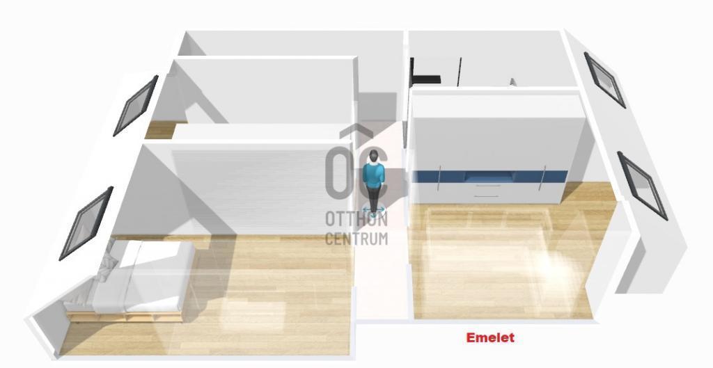 A ház kialakítása kifejezetten családok számára ideális. A földszinten tágas nappali, konyha-étkező kamrával, valamint külön WC kapott helyet, az emeleten pedig két hálószoba és egy félszoba – jelenleg gyerekszobaként használva – található. A fürdőszoba szintén az emeleten került kialakításra. A tárolási lehetőséget padlás, hőszigetelt tetőtér és külön kertitároló biztosítja, emellett műhely is tartozik az ingatlanhoz.