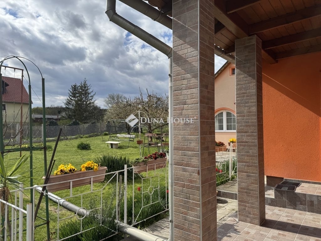 A telek első része füvesített, virágoskerttel, a hátsó részen termő gyümölcsfák és konyhakert kapott helyet. A nagy méretű telek kiválóan alkalmas vállalkozási célra, telephely vagy akár kisebb csarnok kialakítására is.