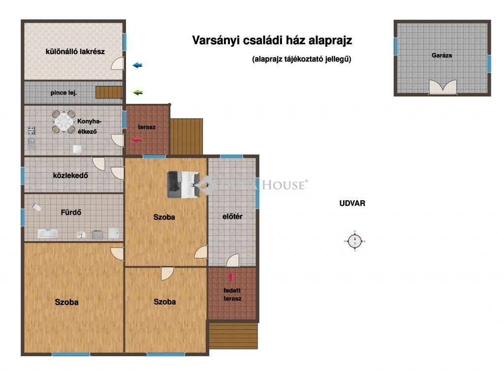 A Cserhát dombjainálNógrád megye északi részénél, Balassagyarmat-Szécsény városok érintésével, egy kis palóc községben, a virágos Magyarországért címerrel büszkélkedő Varsányban, eladó egy klasszikus Kádár kocka családi ház. A ház téglából épült a 70-es évek környékén, cca. 100 nm-es, és két lakrészből áll. Az eredeti házban van 3 nagy szoba, konyha-étkező, egy zuhanyfülkés- kádas fürdőszoba, előtér, zárt gang, közlekedő és egy fedett terasz. Az udvarról egy külön bejárattal, utólagos hozzáépítéssel találhatunk egy kb.15 nm-es különálló, egy helyiséges lakrészt, melyben ugyanúgy ott vannak a közművek és a gázfűtés is. Közművek tekintetében az ingatlan összközműves, víz, villany, csatorna és gáz is be van vezetve. A fűtés gáz konvektorokkal történik, kémények vannak, ha valaki kandallót szeretne. Állapotában belül felújítandó, de most is lakható. A különálló lakrész felett található egy panoráma tetőterasz, melyről csodálatos panoráma nyílik a környező mezőkre, dombokra, messze menő településekre. A telek 1474 nm-es,ház melletti udvarral,melléképületekkel, állattartásra alkalmas ólakkal, és hátsó telekrésszel rendelkezik, melyen gyümölcsfák, parlagon heverő terület tartozik. A föld jó minőségű, zsíros föld, így veteményezni, ültetni, gazdasági tevékenységet kitűnő rajta kialakítani. A telken továbbá önálló garázs, és a ház mellett boltíves pincék is tartoznak. Az utca aszfaltozott, könnyen megközelíthető, jó minőségű úttal. A településen megtalálható minden, ami a napi életvitelhez szükséges. Boltok, orvos, posta, ovi, suli,pékség, éttermek.Az ingatlanra falusi Csok, és kedvezményes hitelek felvehetők.
