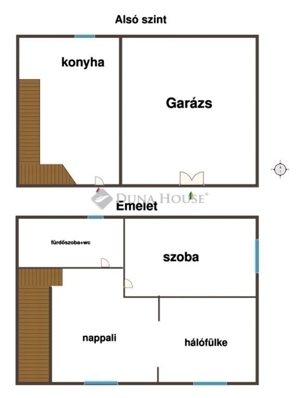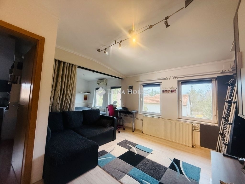 Alsó szinten konyha, az emeleten nappali + 2 szoba