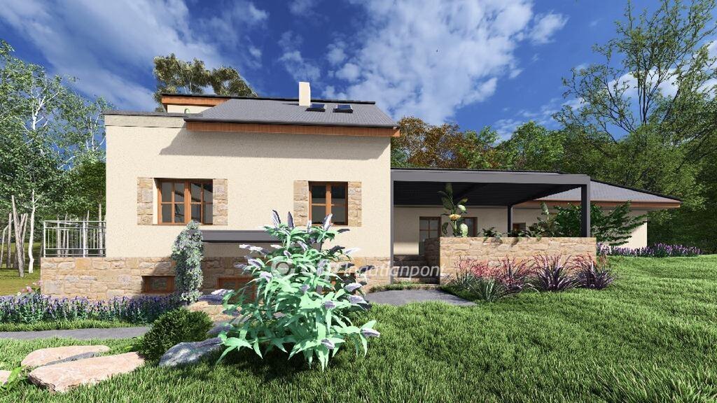 A felépítmény előtt nagy alapterületű fedett terasz.
